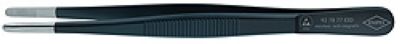 采用铬镍钢制作,具有不锈,防磁(18/10)和防酸的特点;采用ESD涂层,黑色,不反光,电阻为105欧姆;镊尖端采用亚光处理;圆形的镊头,宽度约为3.5mm,夹持表面设有镊齿
