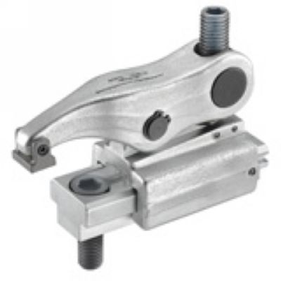 Complete with mounting. Robust clamping element made of alloyed tempered steel, forged, for variable clamping heights, with sliding base element. Components: - Base element - Carrier element