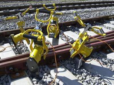 用于有碎石的所有类型的枕木的夯实 四人操作 该装置由四个带有减震扶手的振动器,配电箱和发电机组成 捣镐材质为高强度锰钢 对(混凝土)枕木没有损伤